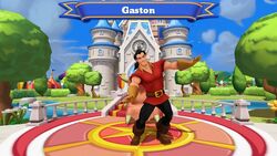 Gaston appears as the villain of Belle's stage. Here, he plots to manipulate the villagers into believing the Beast's castle is evil and should be destroyed. To do so, he breaks into the dark castle and tries to capture Lumiere, Cogsworth, and Mrs. Potts, hoping to use them as proof of the castle's dark magic. However, Belle is able to defeat him using her quick wits.