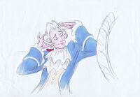 As such, his design was also completely different. He was tall and lank with a mole on the left side of his face and a crooked nose. His attire consisted of a sky-blue jacket and a powdered wig tied with a red ribbon. All of these features gave him a somewhat similar appearance to French noblemen, such as Jean Rousseau or Napoleon.